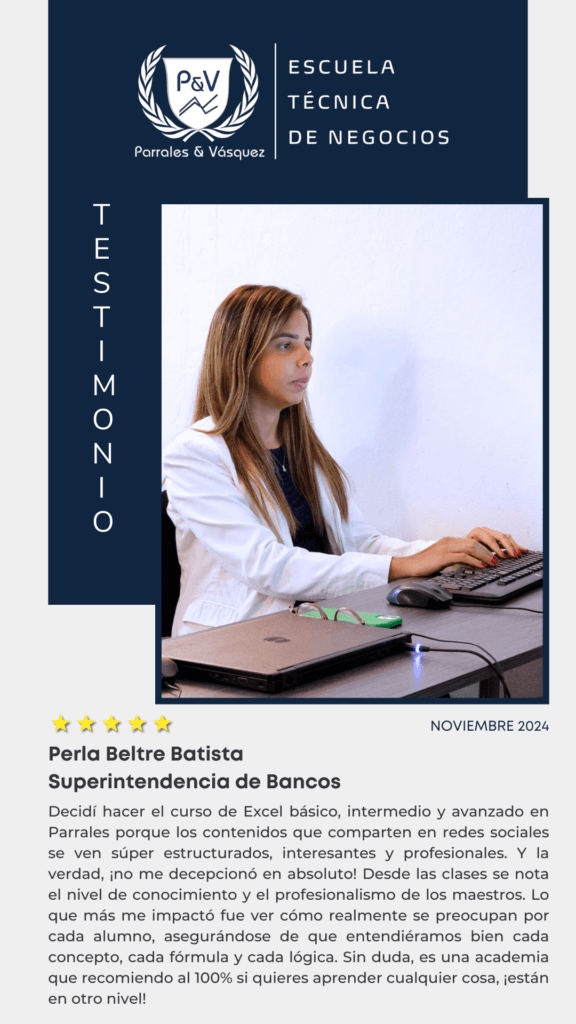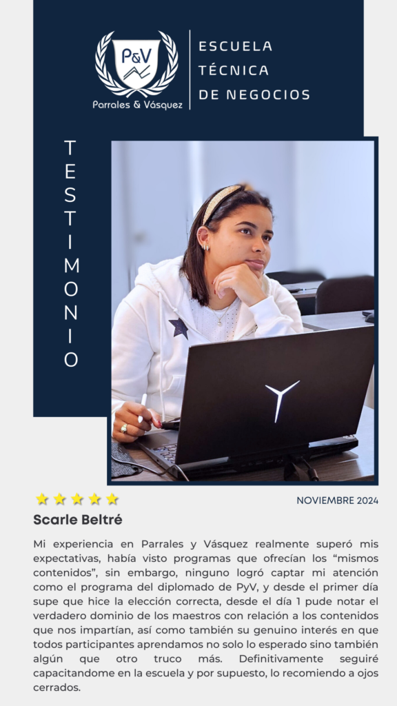 En Parrales y Vásquez creemos que la mejor forma de medir nuestro impacto es a través de la experiencia de nuestros estudiantes. Más allá de los contenidos y la metodología, son sus resultados, crecimiento y satisfacción los que reflejan el verdadero valor de nuestra formación.